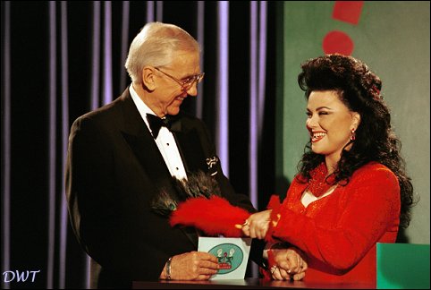 In the episode "The Brain Game," scheduled to air this Friday, April 27th (at 9:00pm EST) on The WB, the students of Kennedy High compete against the parents and faculty in a campy television game show. Mary and Cherry Cherry are pitted against each other with their usual display of theatrics, and Ed McMahan guest stars as the host of the game. Delta fits the campy character like a glove, and her appearances are always a series highlight, so the publicity department pulled out all the stops and hauled in a photographer for the event -- and we have the pics!!*