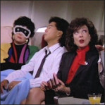 (Cindy, the stewardess, looks at the three of them on this confession)