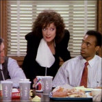 Because of some charity works she is doing, Julia has been invited to a small dinner party with the former president, Jimmy Carter, and he is wife, Rosalyn. However, returning from a shopping trip to prepare for her big night, Julia is met by a County Marshal and arrested for failing to appear for jury duty. Meanwhile, as part of a radio station promotion, Charlene has won a 92 second shopping spree in a record store.